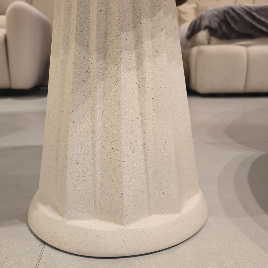 Classical Fluted Pedestal: The base is a distinctive, architectural fluted pedestal, drawing inspiration from classical columns while maintaining a streamlined modern profile. This vertical texturing adds depth and sophistication to the piece.