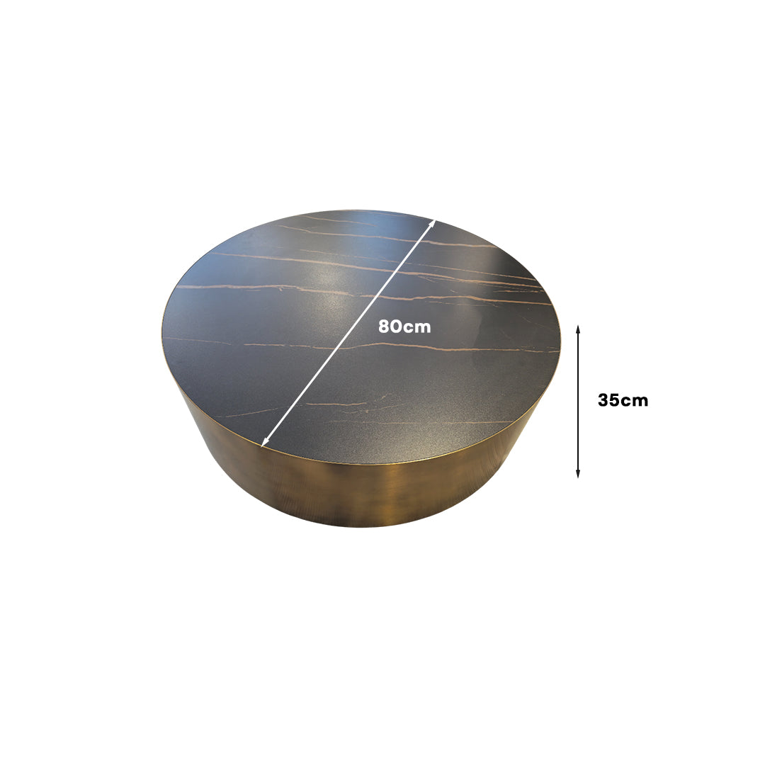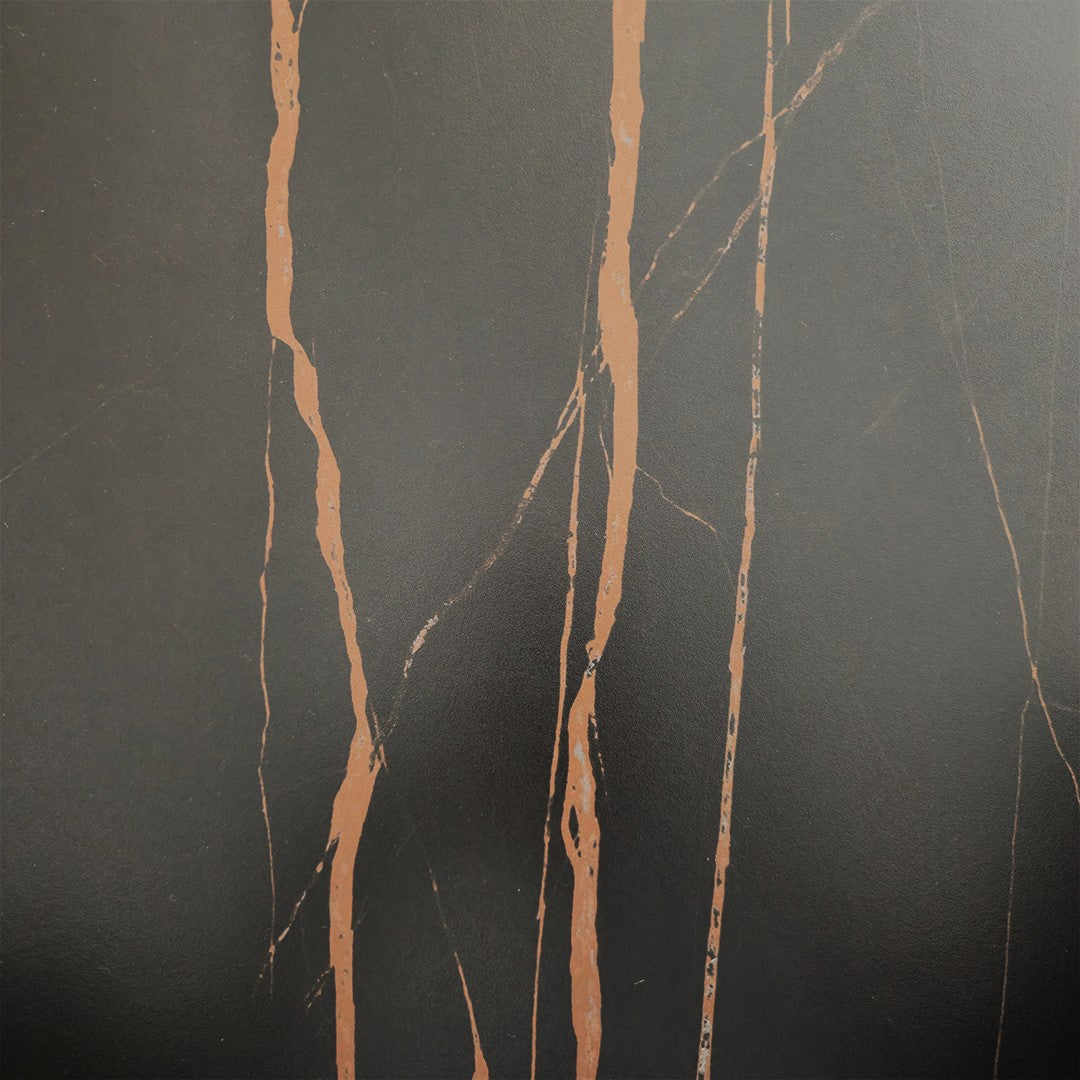 Premium Tabletop: The generous, round surface features a durable Ceramic Top (styled to resemble dark marble with striking copper/bronze veining), which is highly scratch and heat-resistant, offering long-lasting beauty and utility.