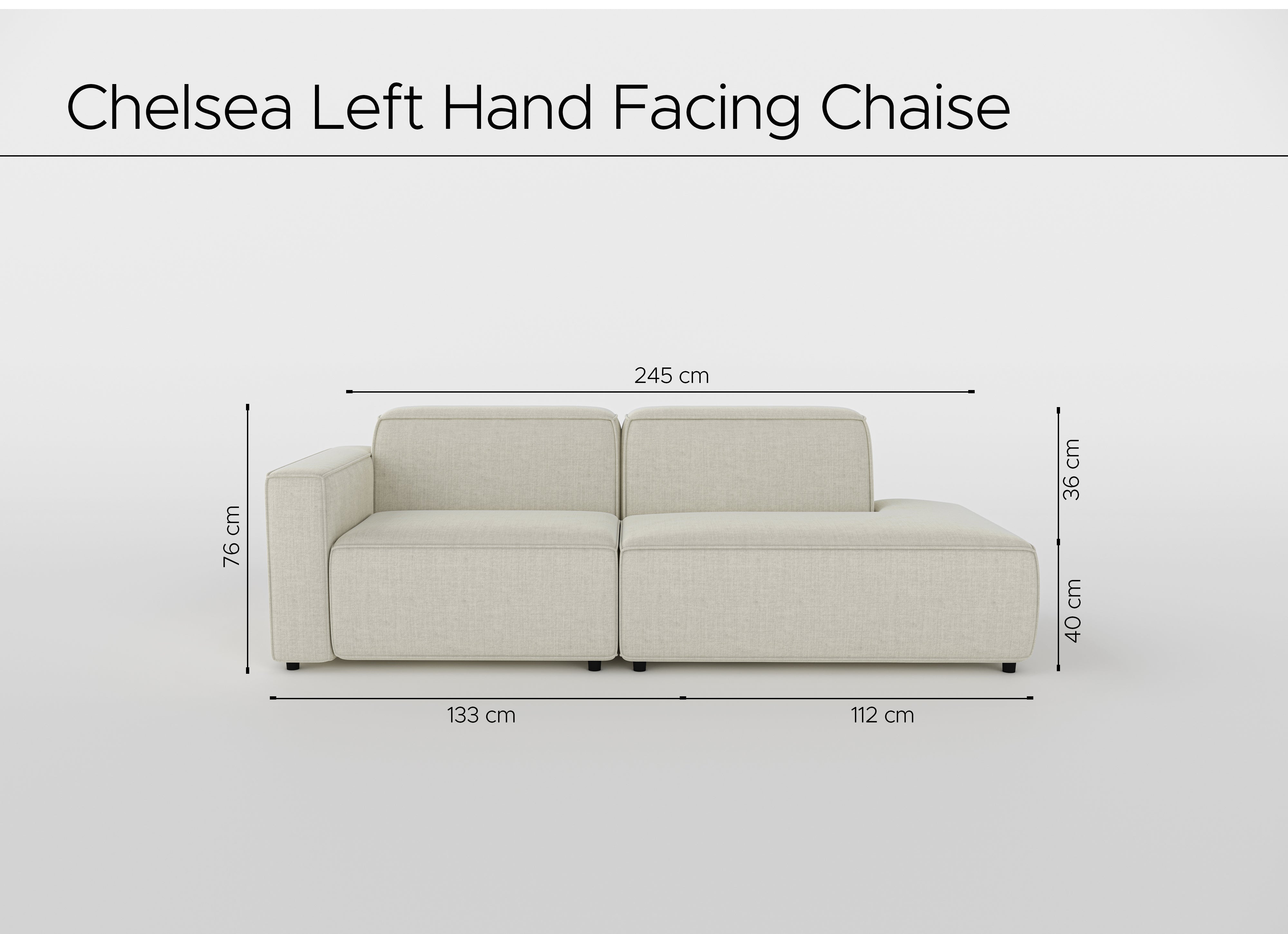Sink into simplicity with the Chelsea Chaise Left Sofa – a clean, contemporary statement piece designed for modern living.